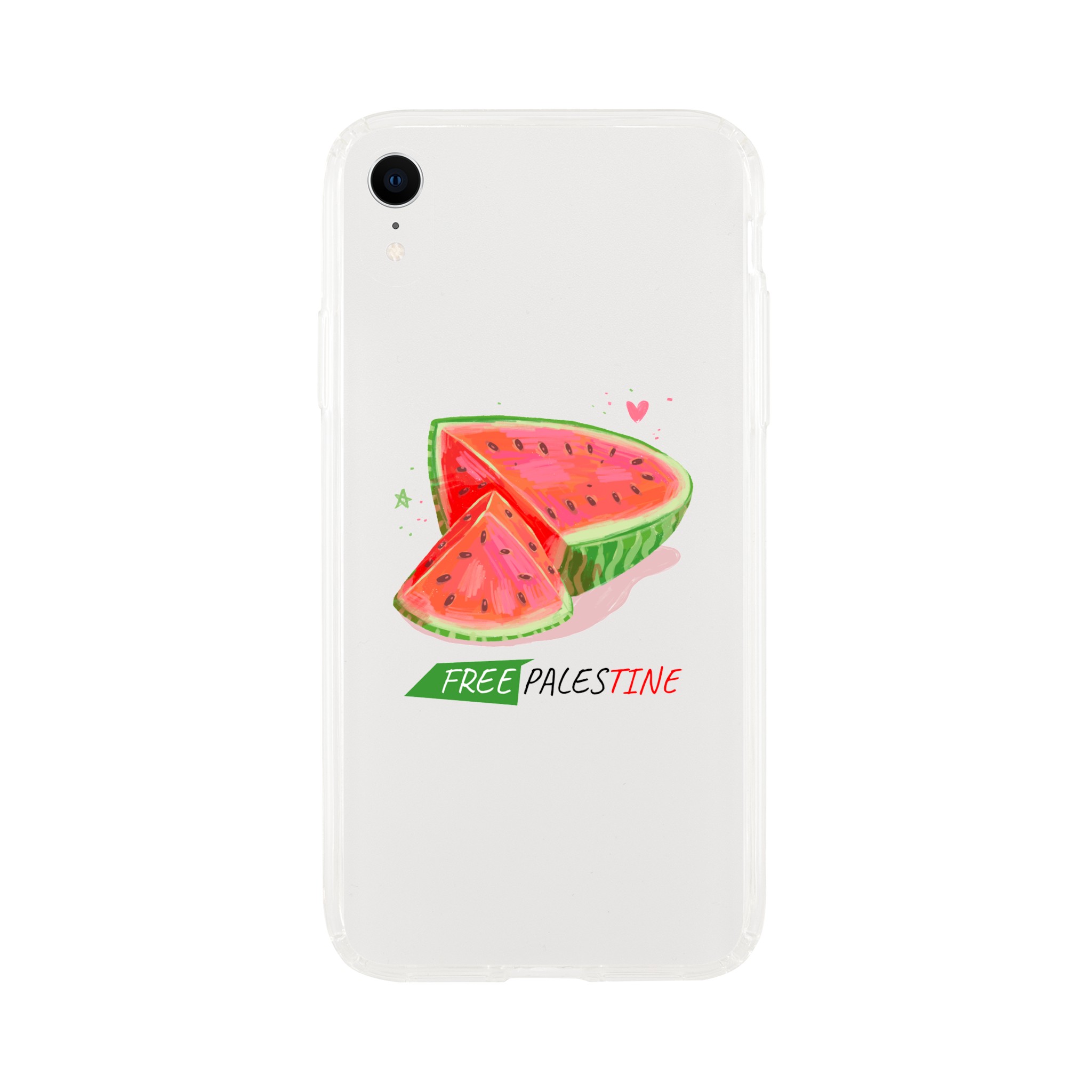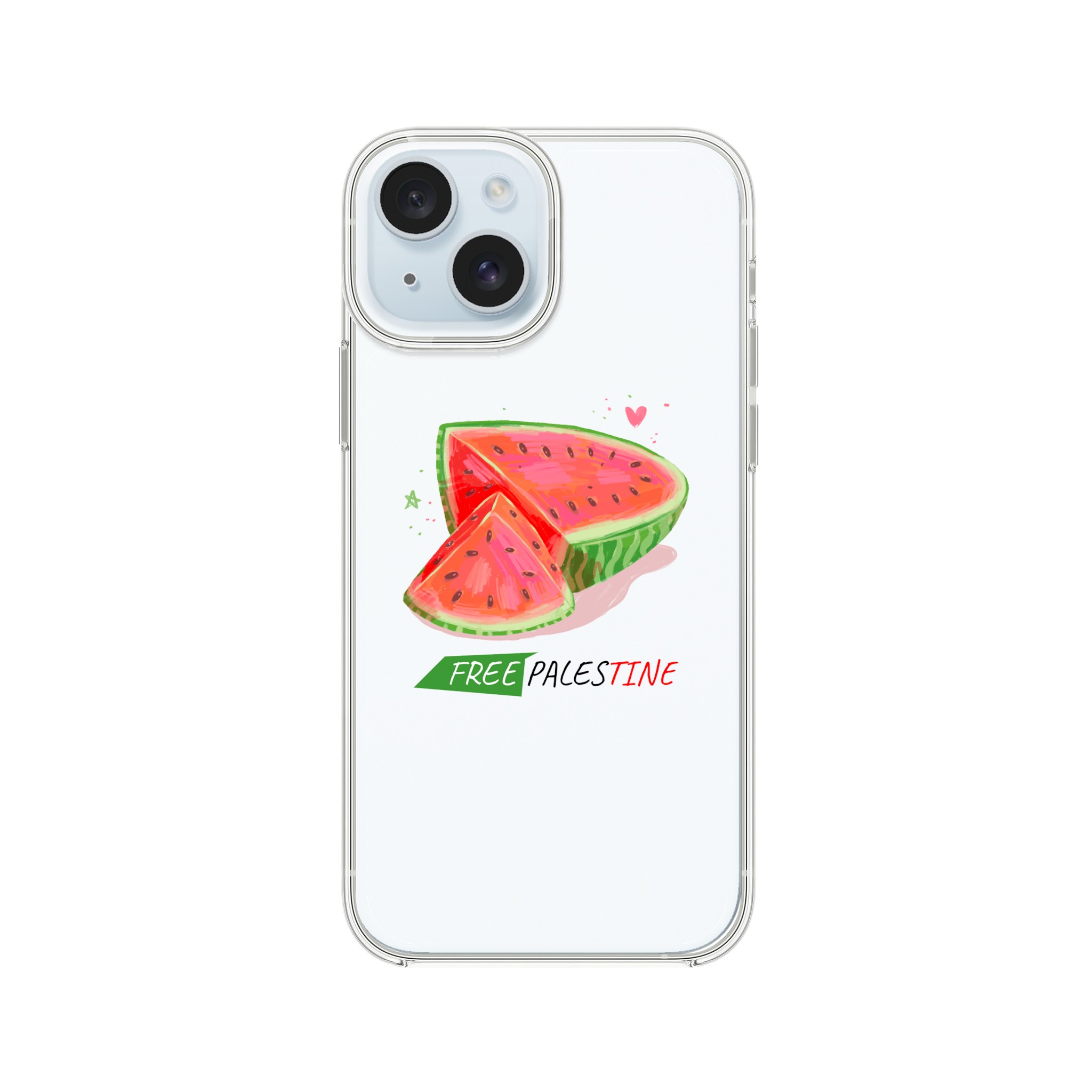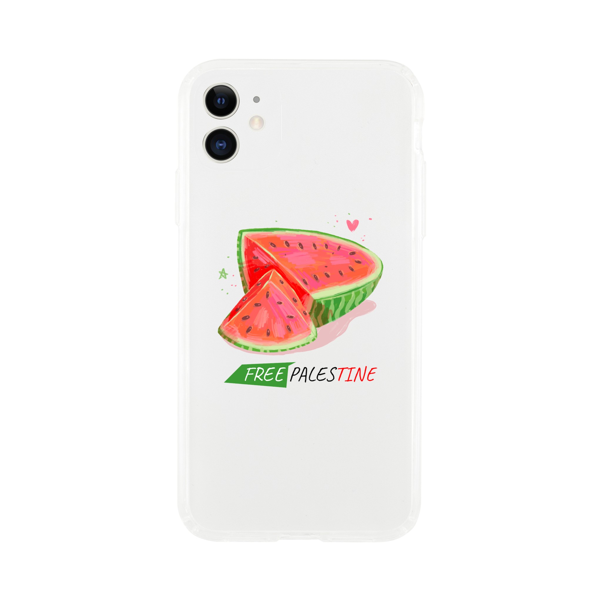 Iphone X- Iphone 15 – Gjennomsiktig etui trykket med vannmelon og «Free Palestine»