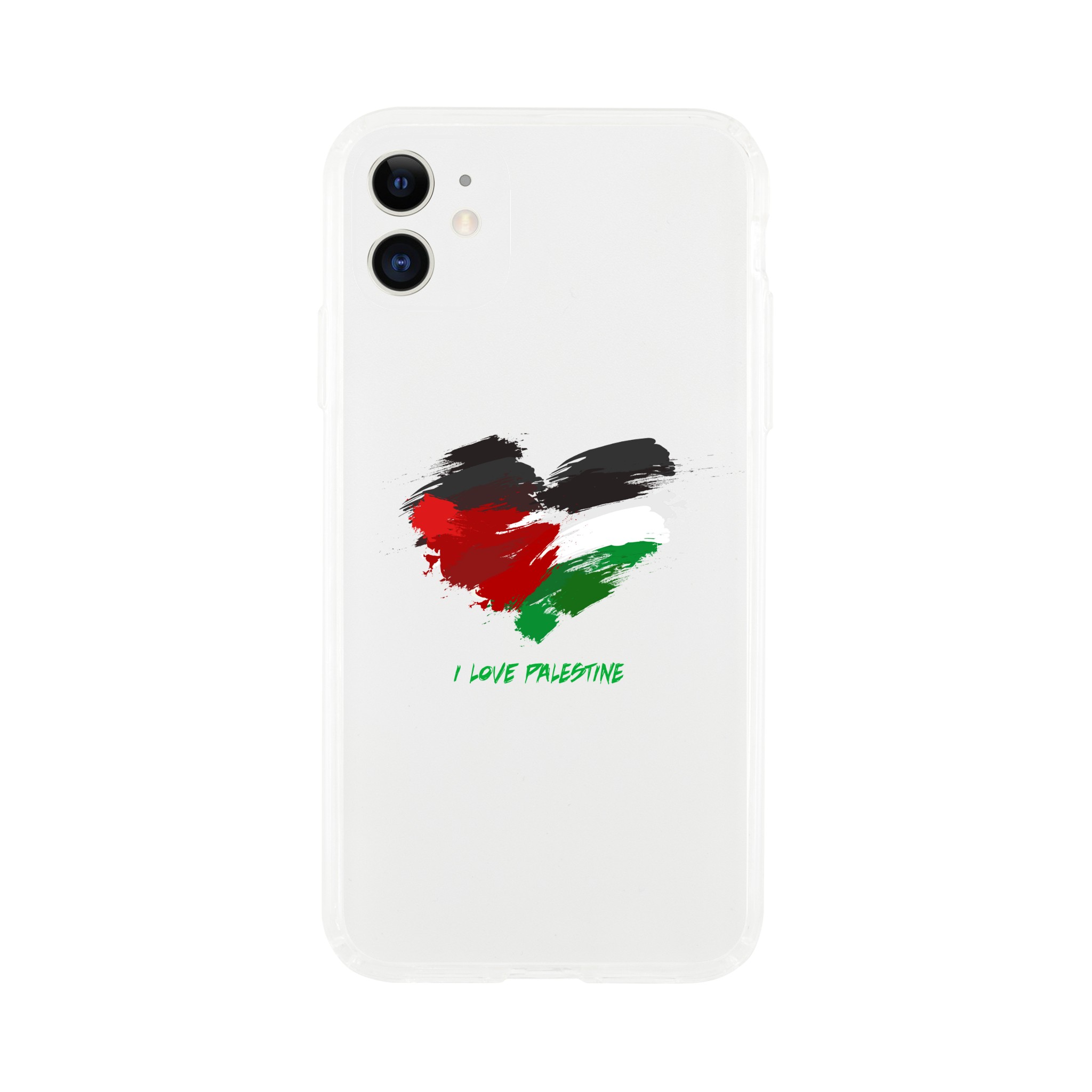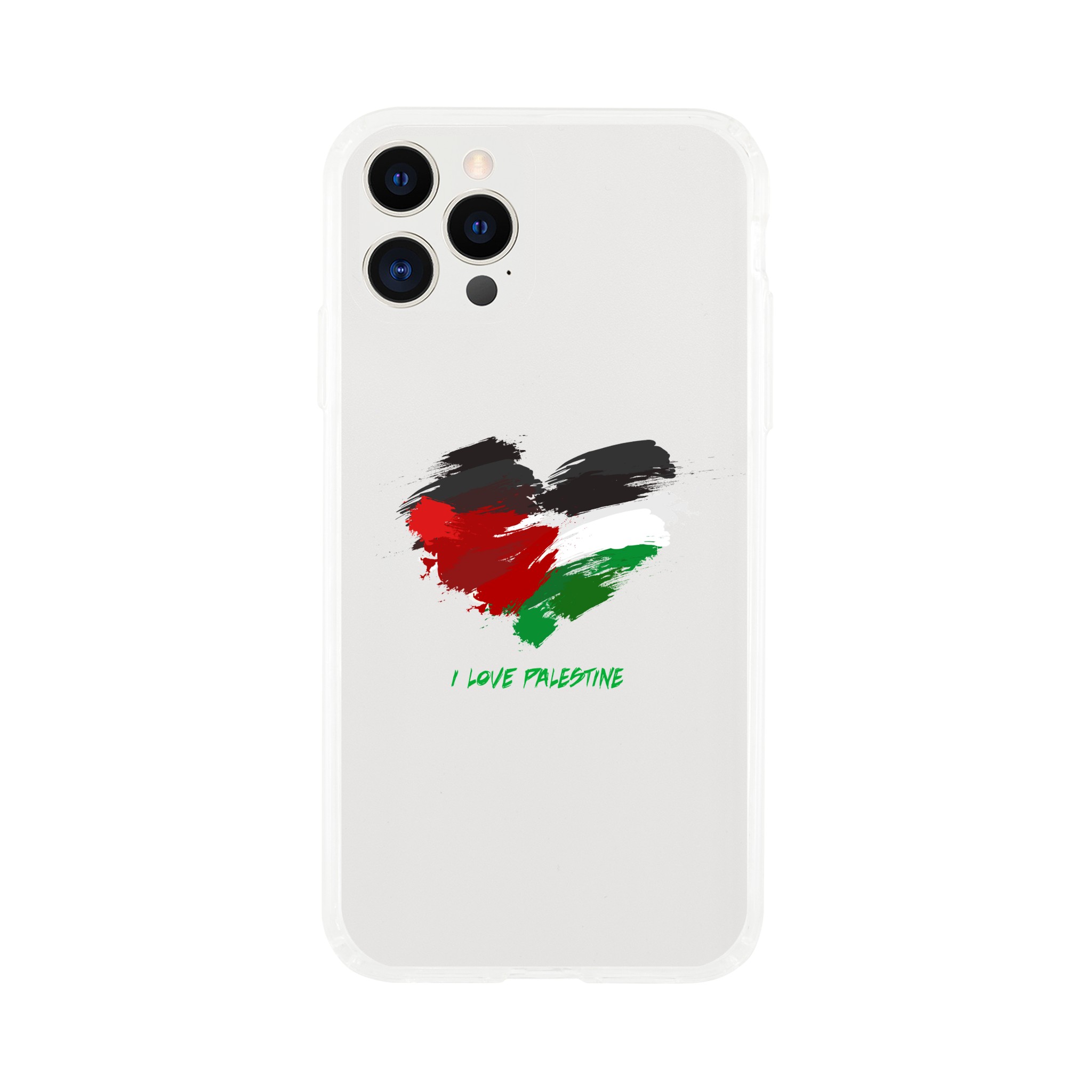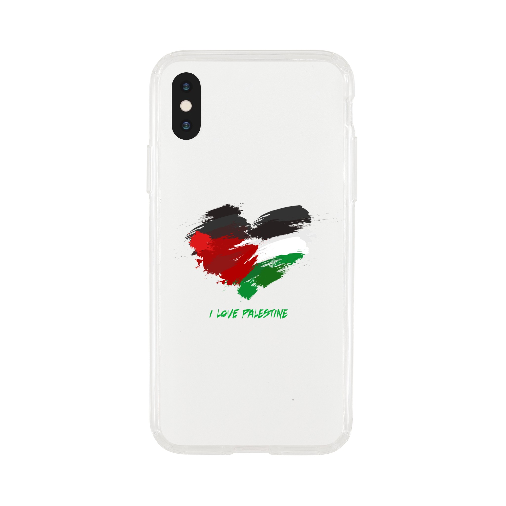 Iphone X- Iphone 15 – Gjennomsiktig etui trykket med hjerteformet Palestina-flagg