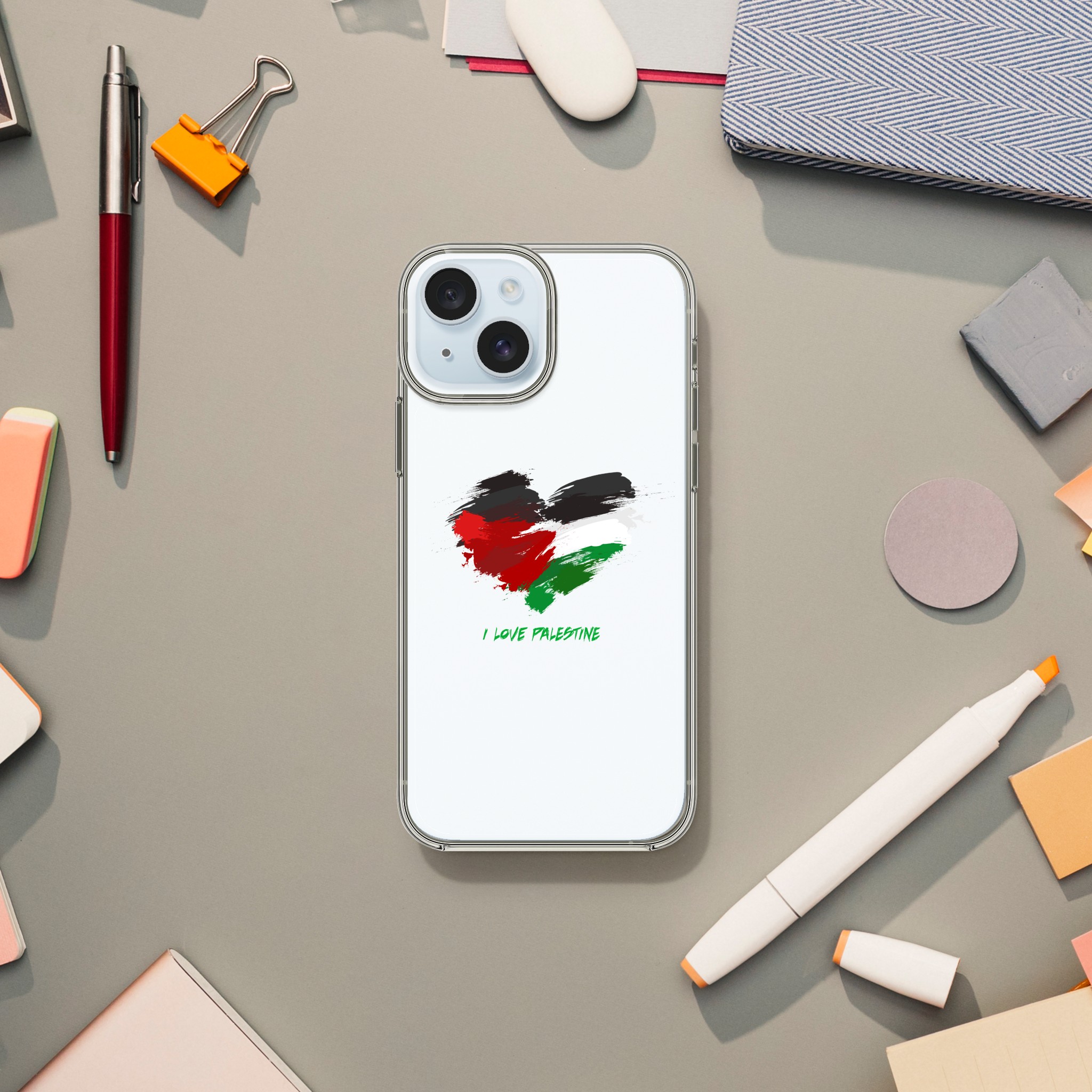 Clear Case gir beskyttelse med stil uten at det går på bekostning av funksjonalitet. Den slanke, gjennomsiktige designen gir slagfasthet og ripebestandig holdbarhet samtidig som den forblir ultratynn med hjerteformet Palestina-flagg.