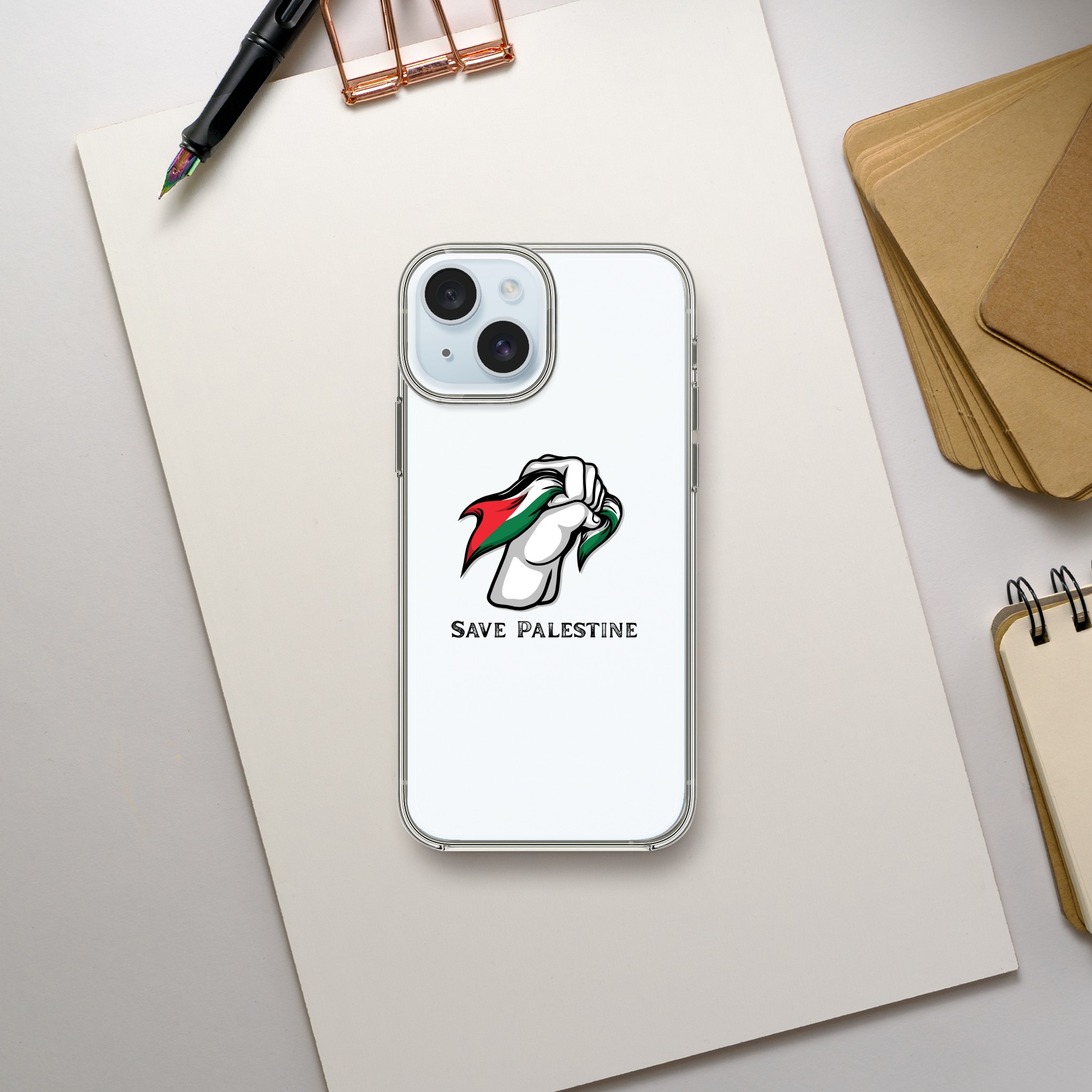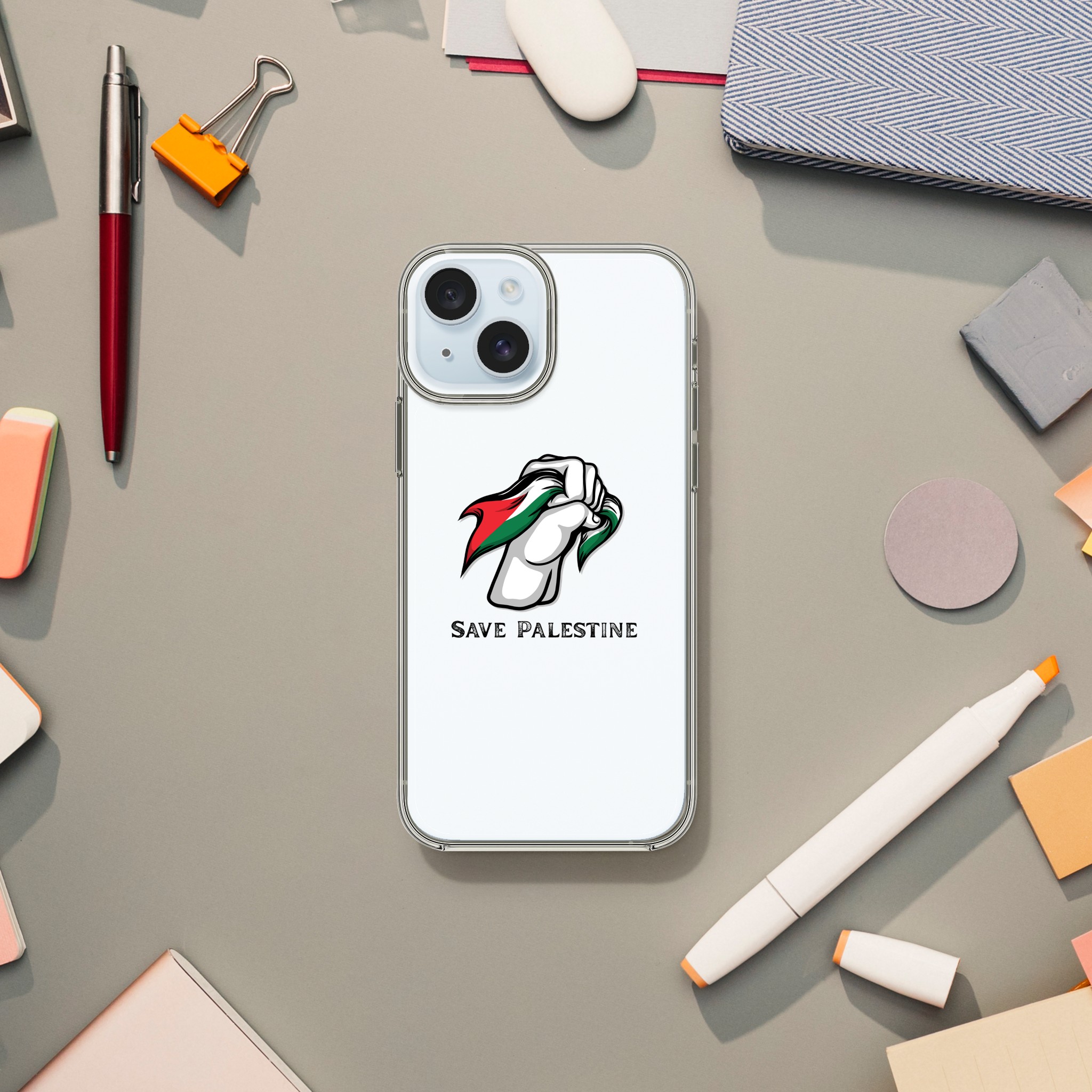 Clear Case gir beskyttelse med stil uten at det går på bekostning av funksjonalitet. Den slanke, gjennomsiktige designen gir slagfasthet og ripebestandig holdbarhet samtidig som den forblir ultratynn med en hånd som holder Palestina-flagget.