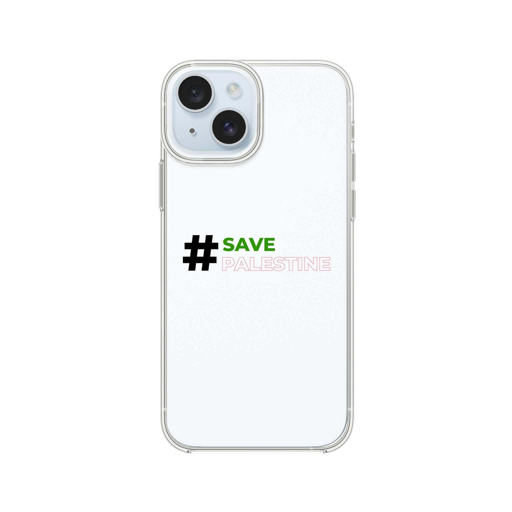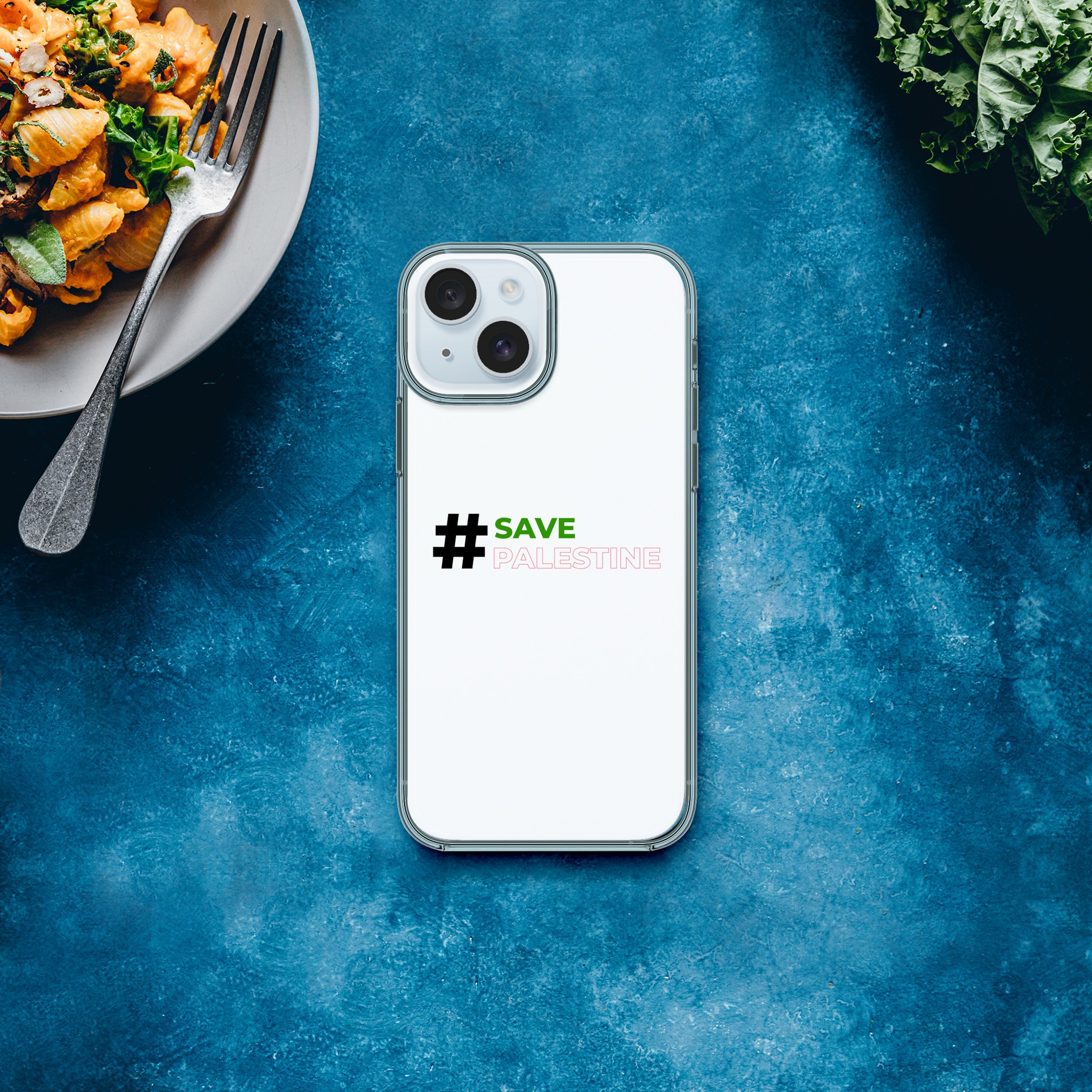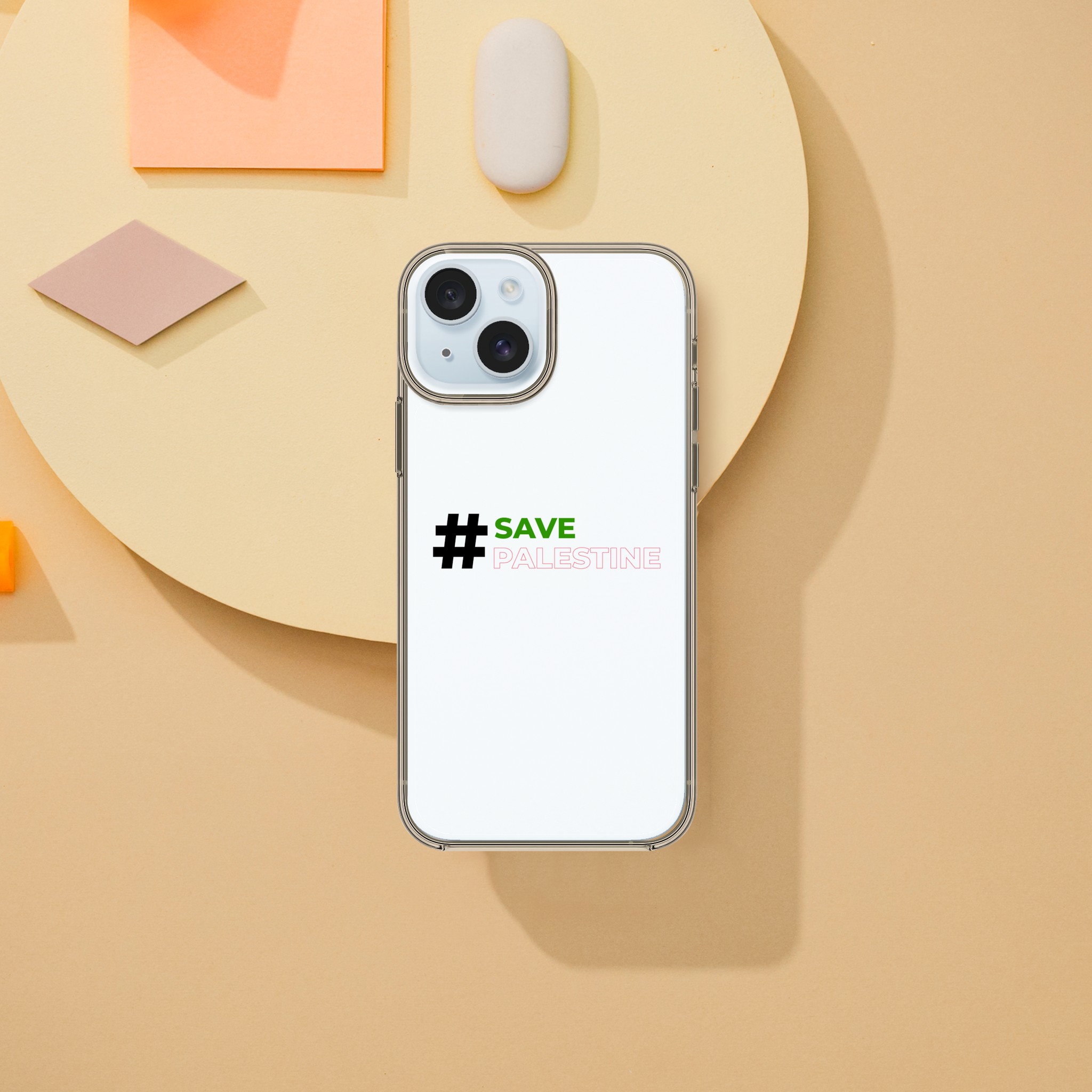 Iphone X- Iphone 15 – Gjennomsiktig etui trykket med #Save Palestine