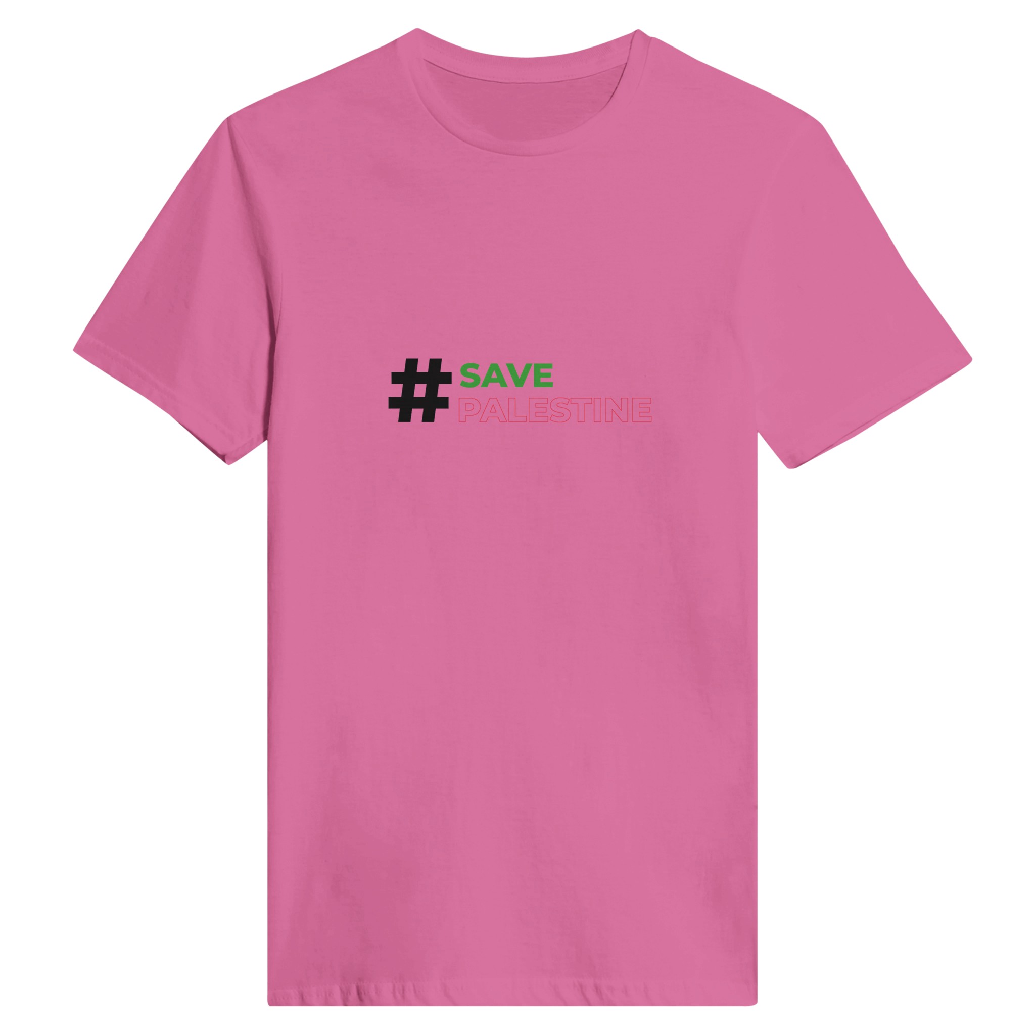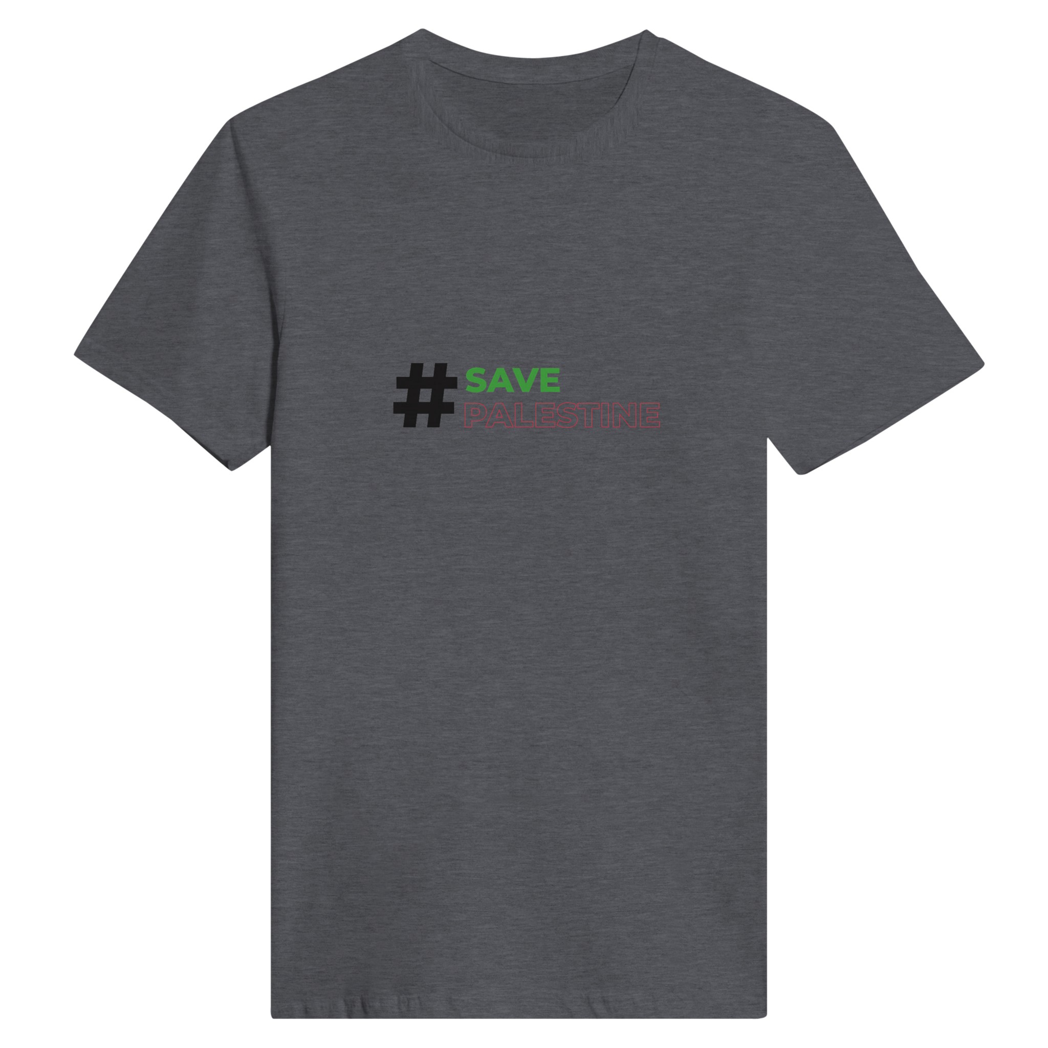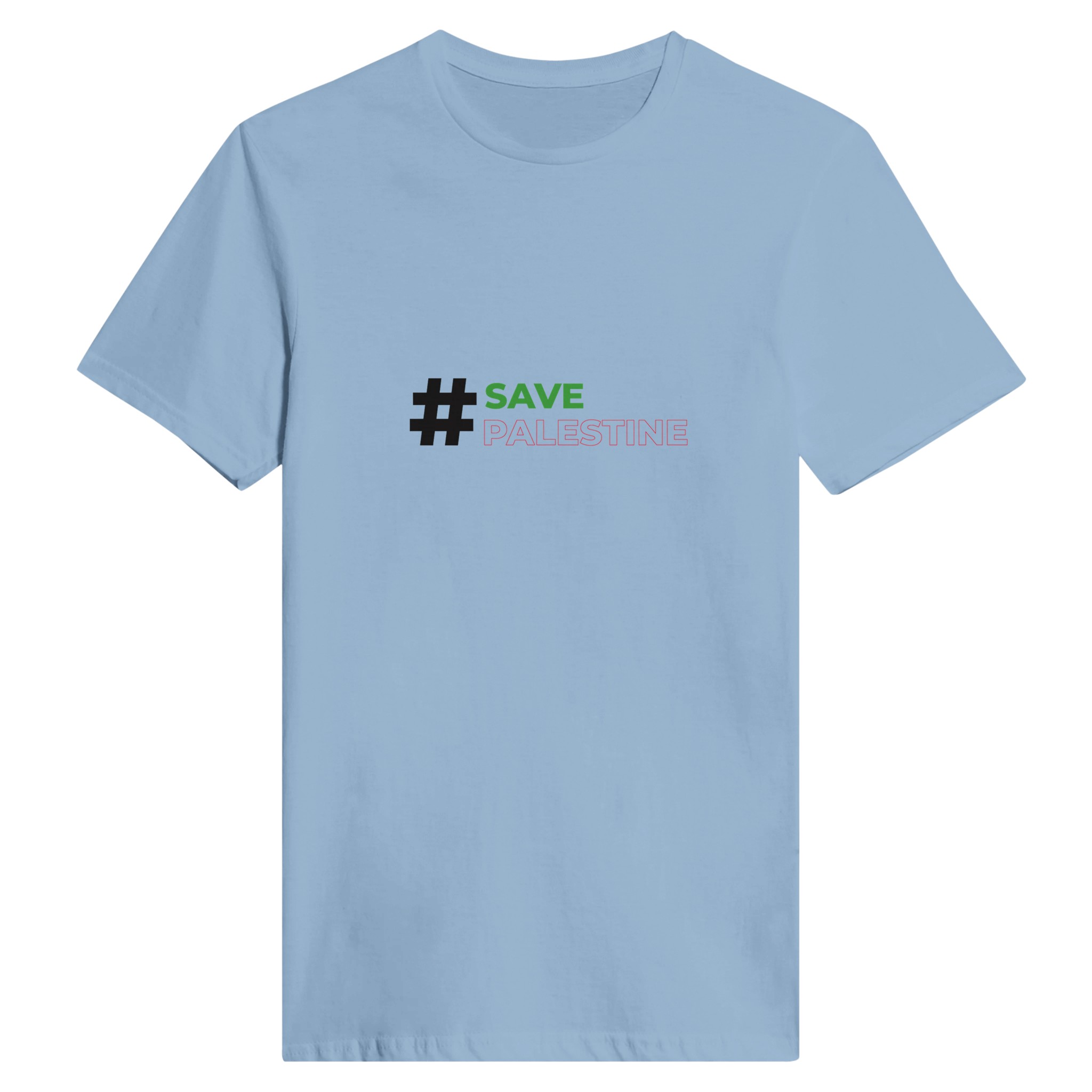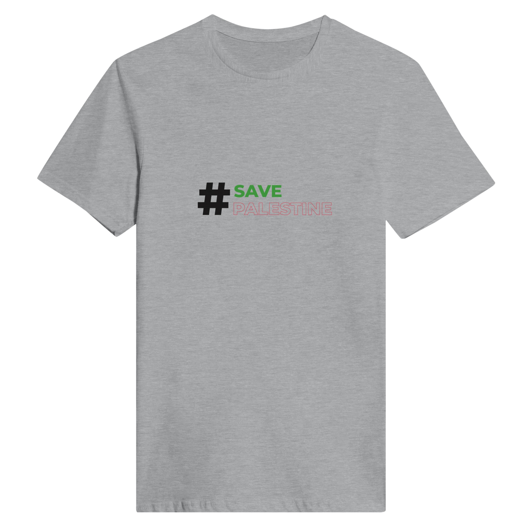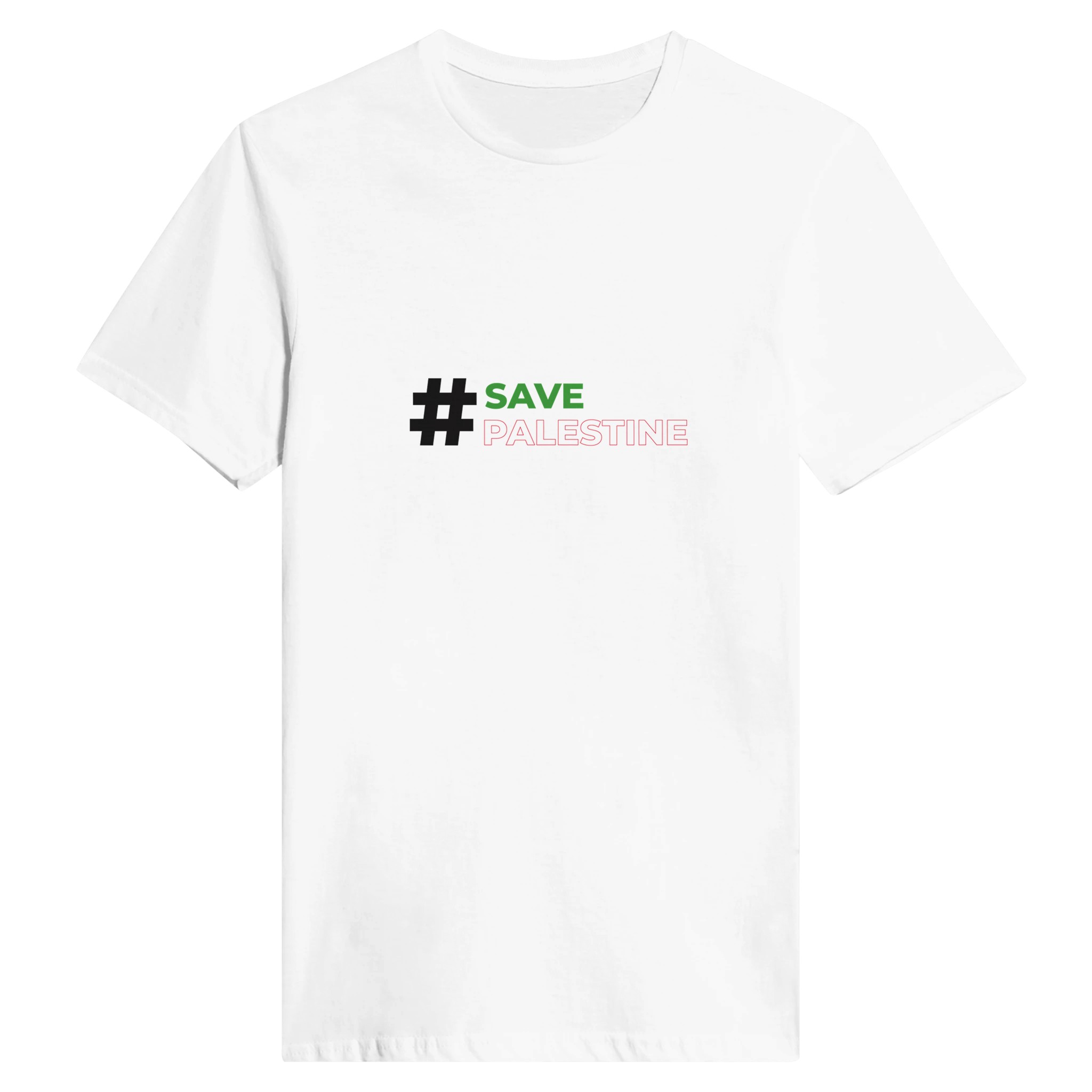 Uttrykk din støtte med stil med vår hvite rund hals T-skjorte, prydet med den kraftfulle hashtaggen #SavePalestine. Denne T-skjorten er et perfekt valg for de som ønsker å gjøre en meningsfull uttalelse, samtidig som de holder seg komfortable og stilige.