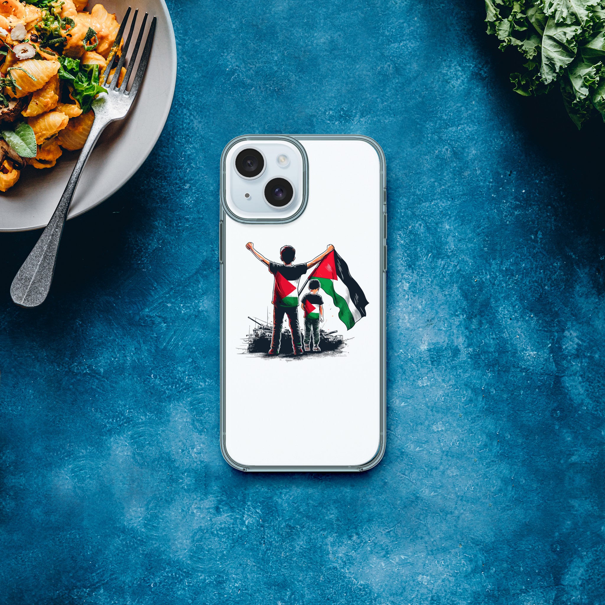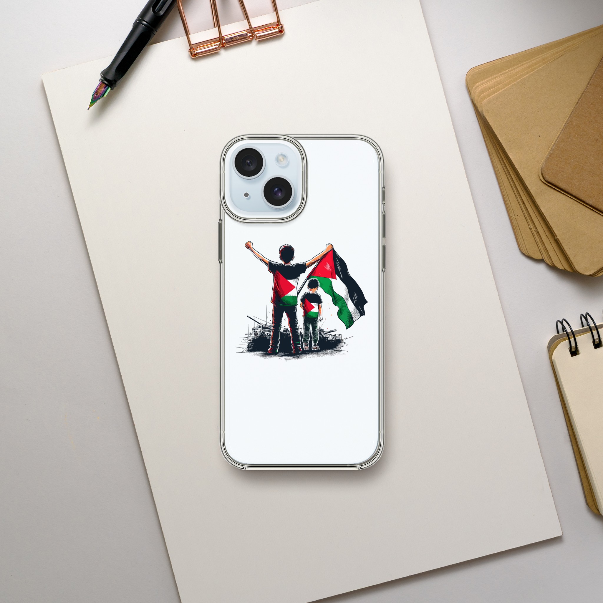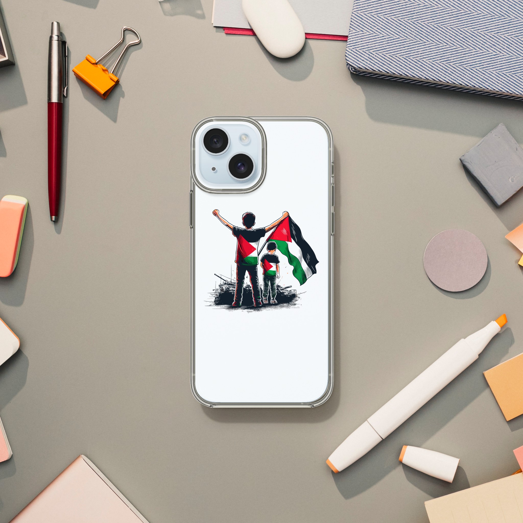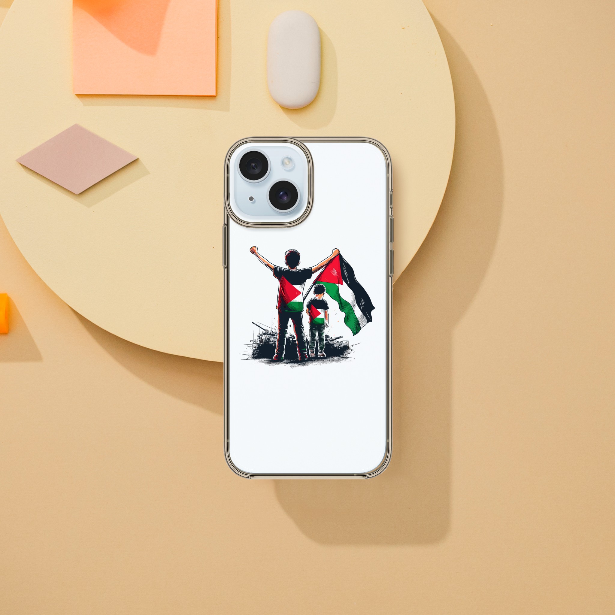 Beskytt mobilen din med et budskap om håp med dette gjennomsiktige Palestina mobildekselet. Den har et hjerterørende design av to gutter, der en av dem vifter med et palestinsk flagg, som representerer solidaritet og håp. Dette dekselet er ikke bare stilig, men den er også holdbar til daglig bruk. Ved å bruke den viser du din støtte til Palestina og bidrar til å øke bevisstheten rundt denne saken.
